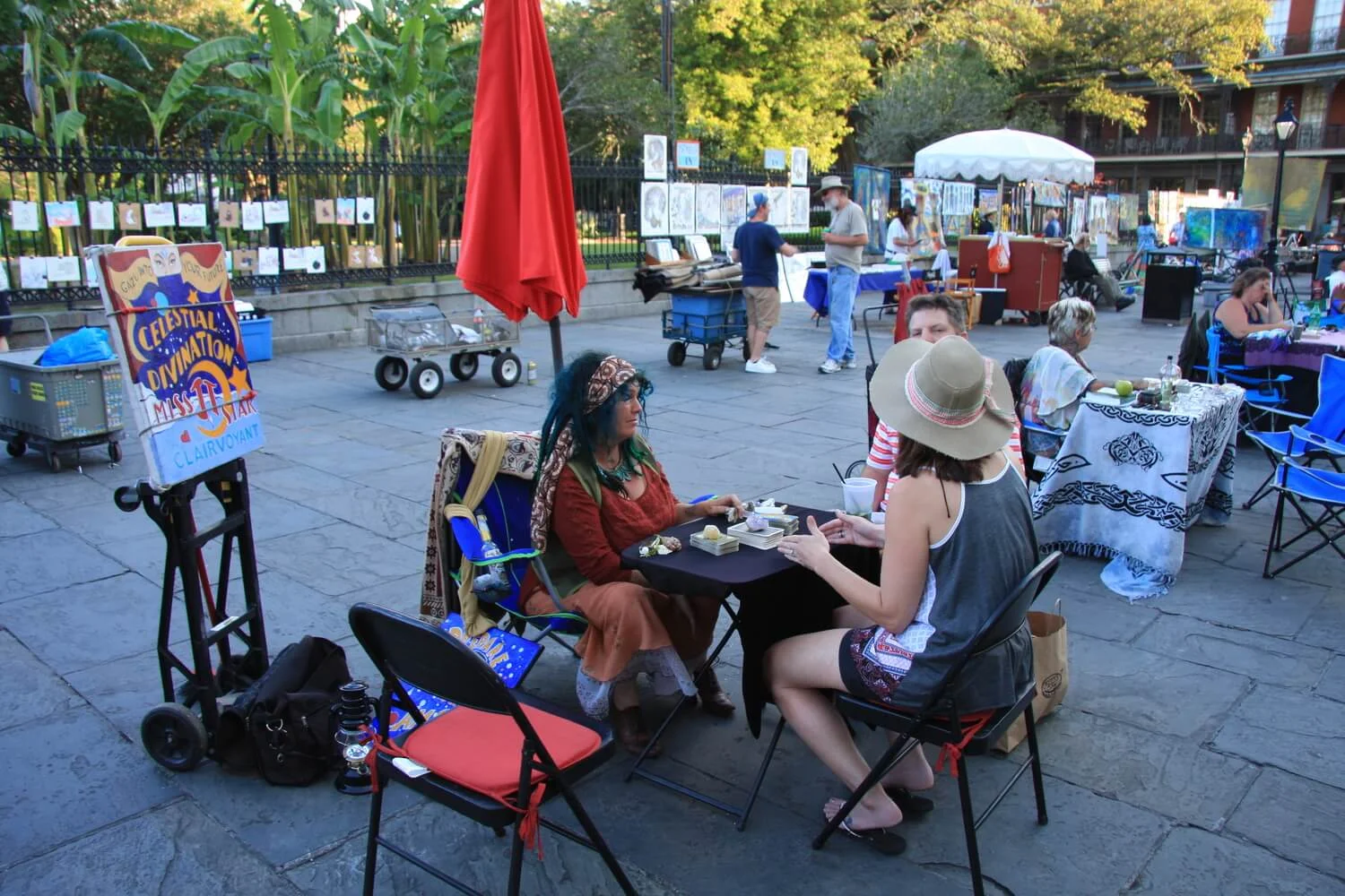 New Orleans has a very spiritual scene. It is a fact...and is apparent by the voodoo culture, hex shops, and many ghost tours. So it seems only fitting that plenty of Fortune Tellers, Palm and Tarot Card Readers would set up shop in this town. If you're ready to have your destiny unveiled, you need not look further than right in front of Saint Louis Cathedral, where most weekend days, a dozen or so of these spiritual tellers have been waiting for you.
